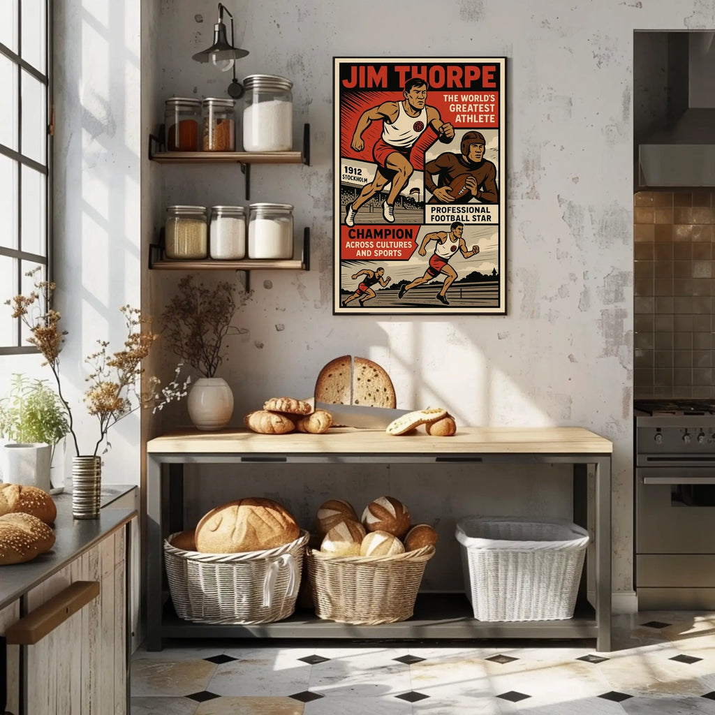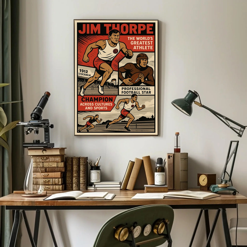 Bold Iconography: Bold typography and archival-quality imagery capture Thorpe's multi-sport prowess, delivering a striking centerpiece that elevates any room and preserves history for generations.