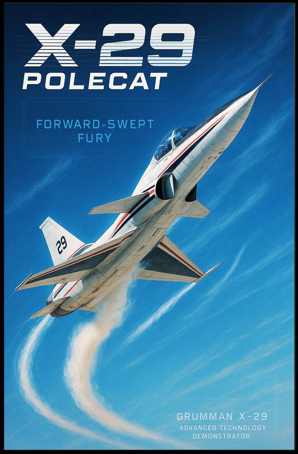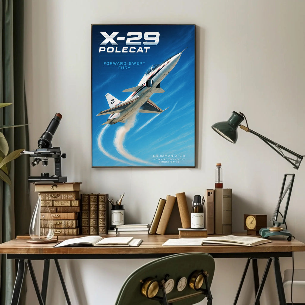 Own a piece of forward-swept history — add the X-29 Polecat Poster to your cart today and lift your decor to new heights.