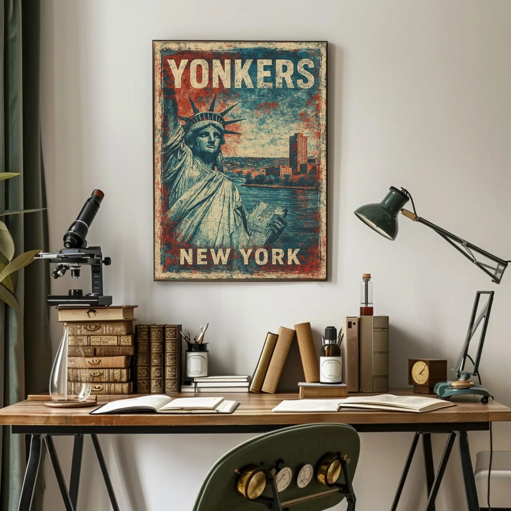 - Printed with precision and made to inspire, this artwork is more than decoration—it’s a conversation piece that connects history, culture, and style. Bring Yonkers, New York Vintage Tribute Poster into your home, classroom, or office today and let your walls tell a powerful story.