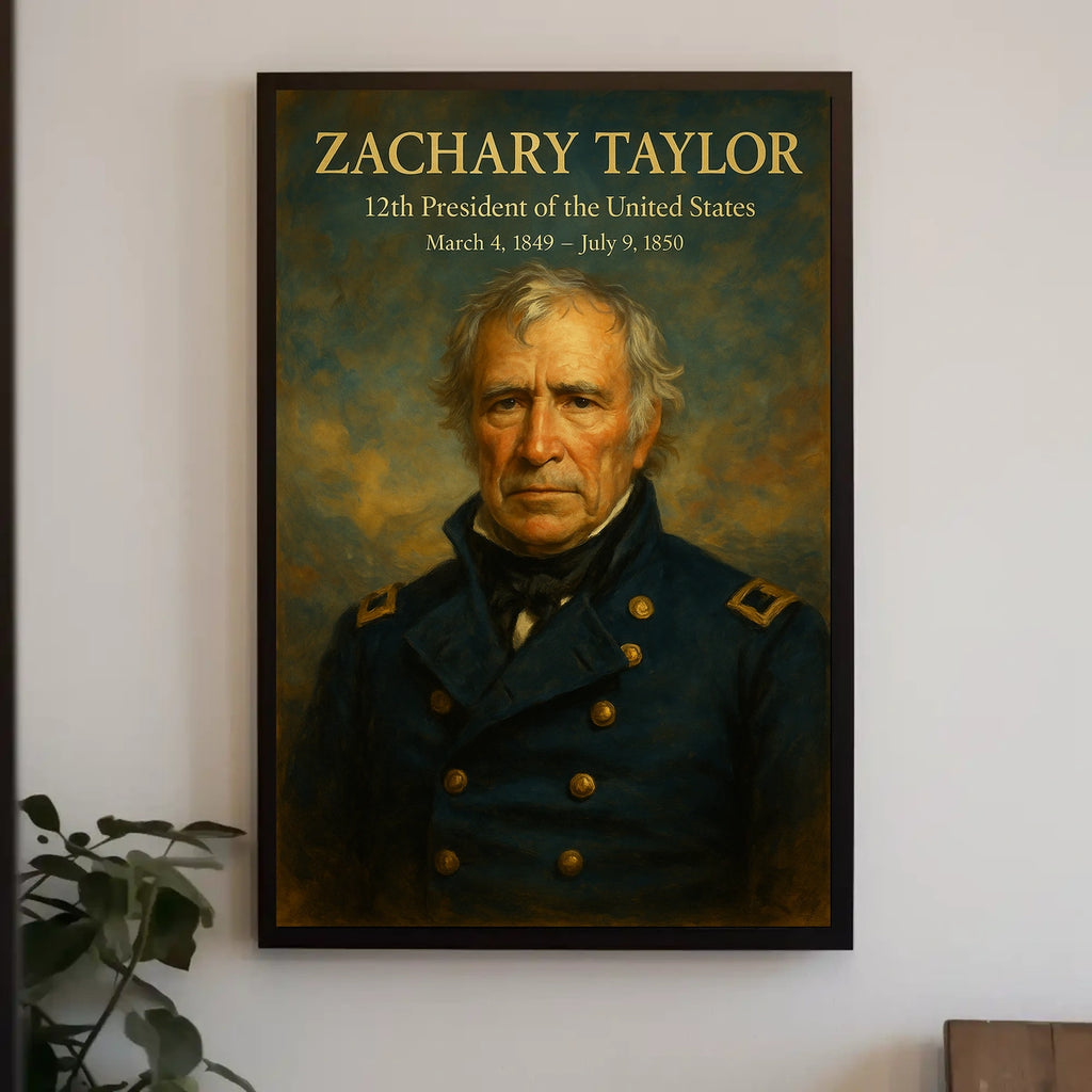 Intro: Dive into the intriguing yet brief presidency of Zachary Taylor with this detailed poster. As the 12th President of the United States, Taylor led with military prowess and candid leadership, guiding a nation on the brink of the pre-Civil War era. This poster makes history approachable for classrooms, offices, and living spaces.