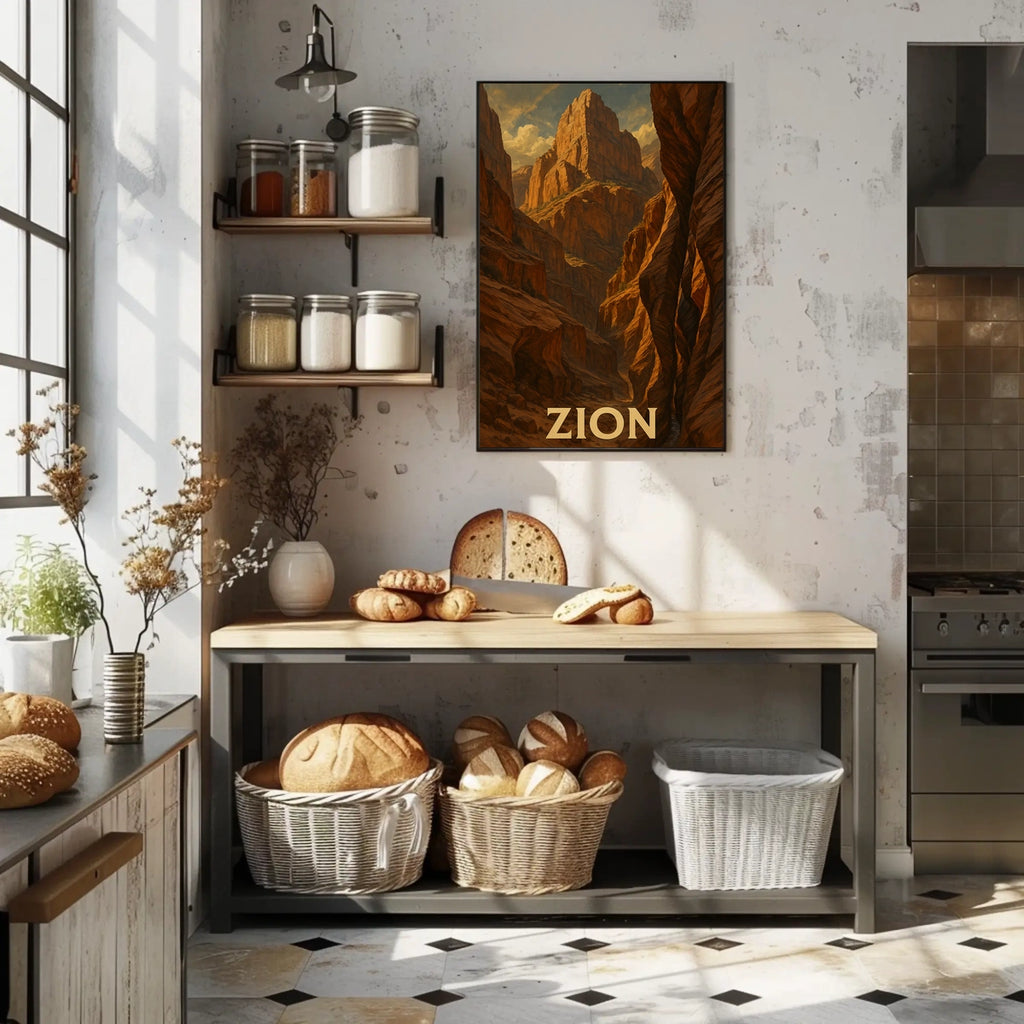 This poster captures the essence of Zion National Park. Designed for decor lovers and wanderlust spirits, this art print adds charm to any room with scenic visuals inspired by real-world scenery.